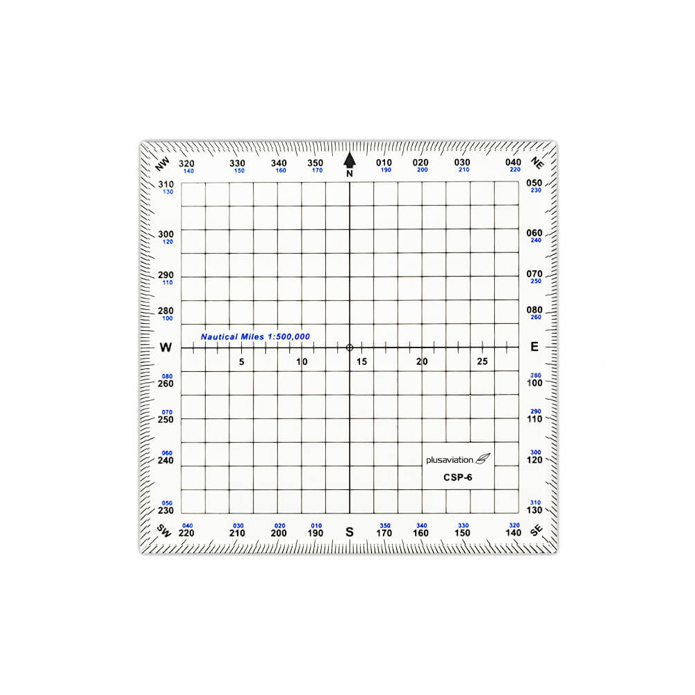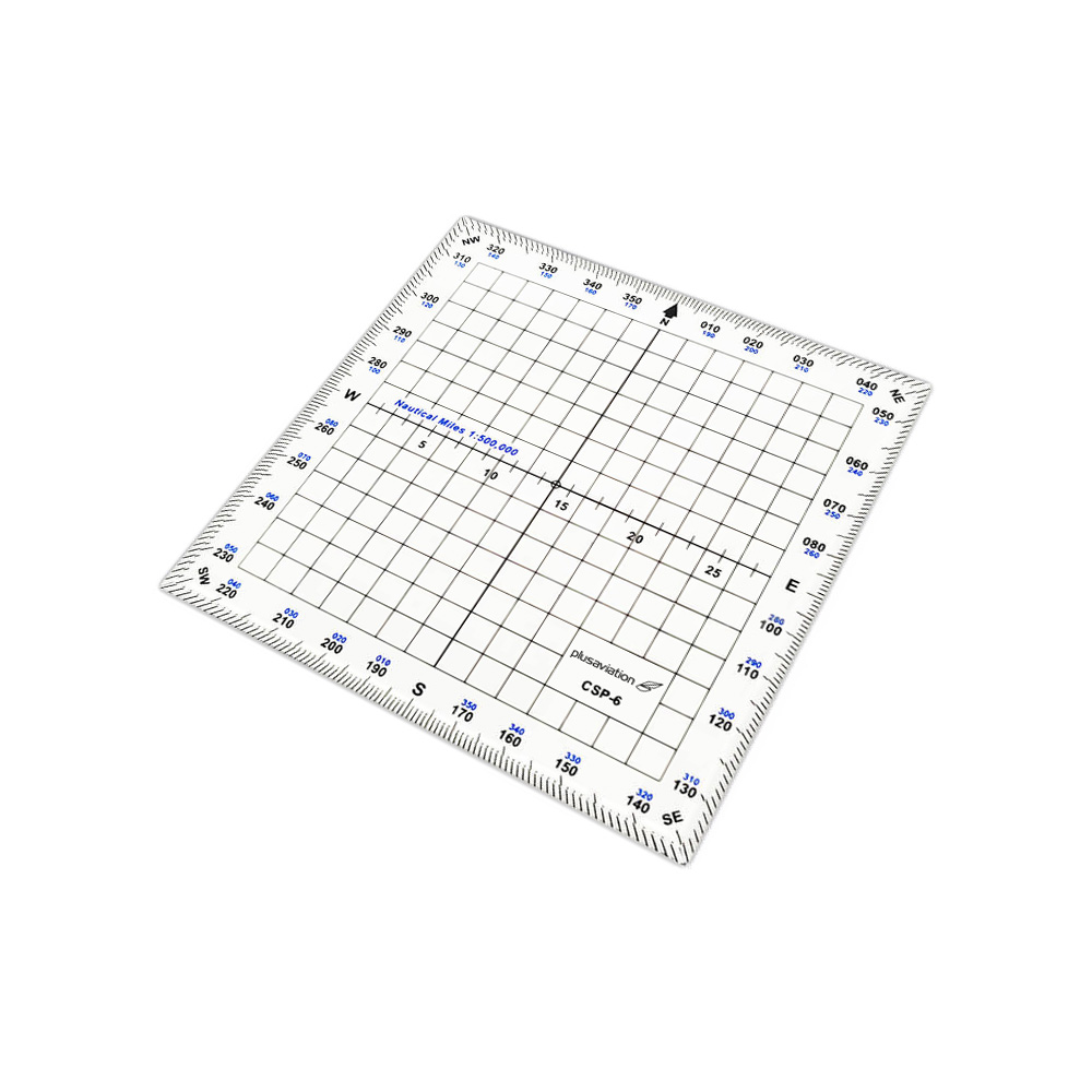 Lexan resin plastic will never warp, melt or break in high temperature environment! 5-1/8” square size protractor with 0-360 scale on outside edge, a perfect easy-to-use tool for flying school students. Showing NW, NE, SE, SW on each corner, 1:500,000 nautical miles scale includes 5 NM and 10 NM radius rings.